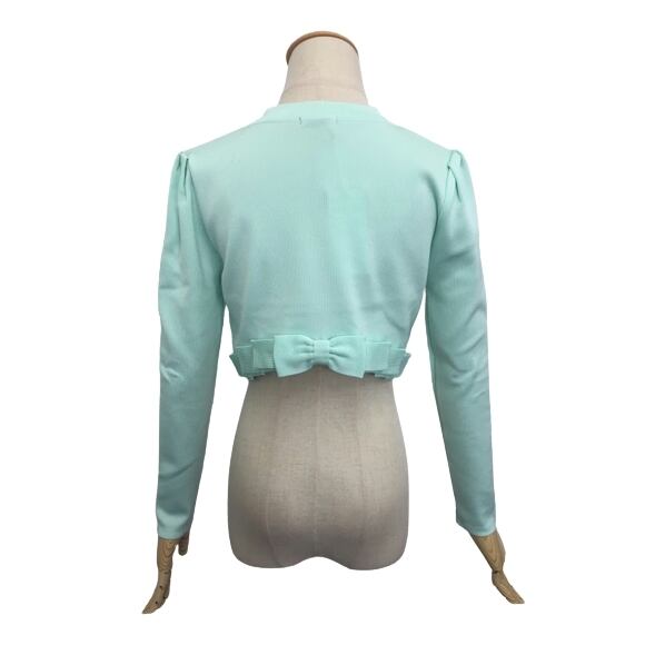 【トワレ toilette 新品】ボレロ カーディガン バックリボン ブルーグリーン M L サイズ3 大人かわいい服 30代 40代 50代 60代 ディリーウェアー 386-896