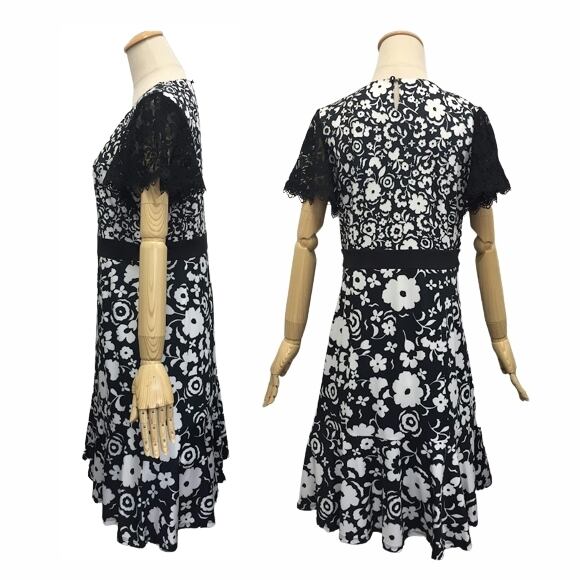 スーパービューティー ワンピース 2023年春夏入荷 モノトーン 花柄 スムース素材レース袖 M L LL 30代 40代 50代 60代 2316020 大人かわいい服