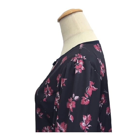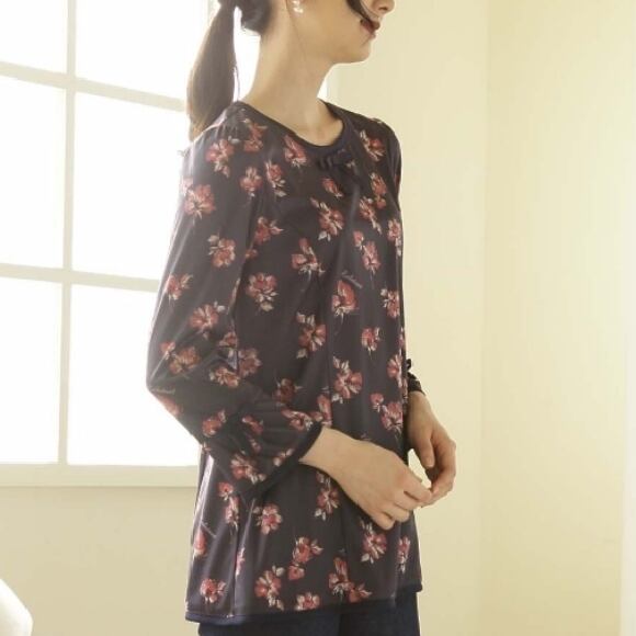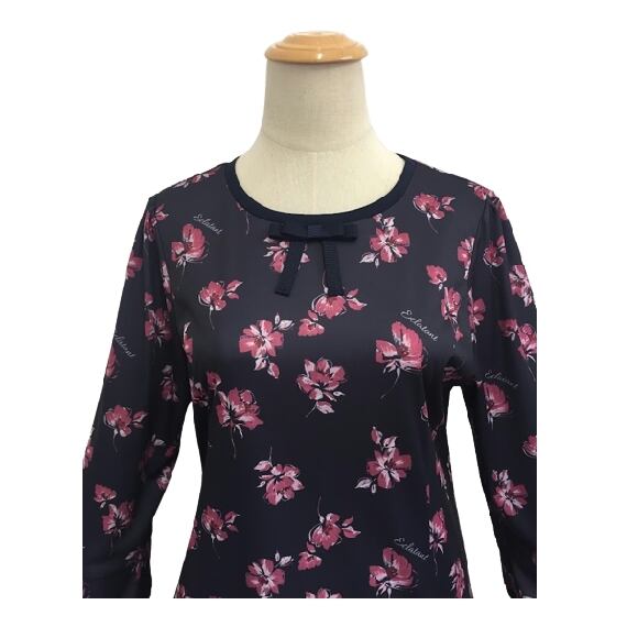 エクラタン チュニック フラワー&ロゴデザイン グログランテープリボン ネイビー M L 30代 40代 50代 EC223029 働く女子 通勤コーデ 大人可愛いコーディネート