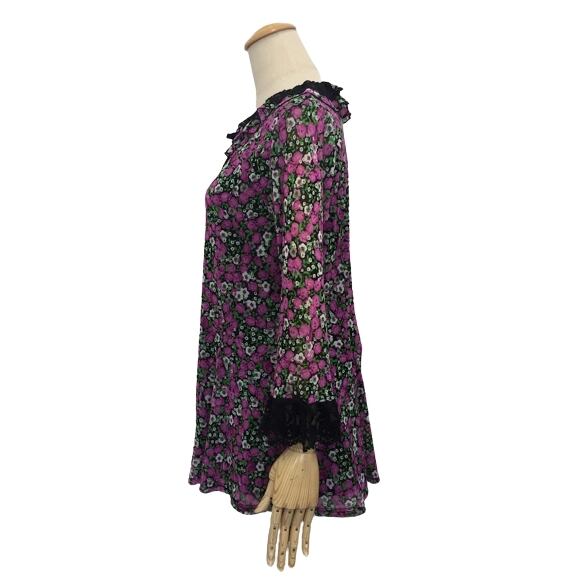 スーパービューティー チュニック 2023年春夏入荷 小バラ柄 パワーネット 7分袖チュニックカットソー ピンク M L LL 30代 40代 50代 60代 2312006 大人かわいい服