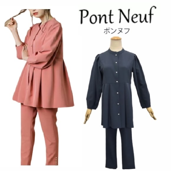 【Pont Neuf ポンヌフ 新品】チュニックブラウス ストレッチ ディーマンブルー M L BB3056 2022年秋冬 働く女子 通勤コーデ 大人可愛いコーディネート 30代 40代 50代 上品 おしゃれ