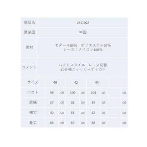 スーパービューティー カーディガン 前立てレース&リボン7分袖ニットカーデ ホワイト Super Beauty 2023年春夏入荷 オーラボーM L LL 2311028 30代 40代 50代 60代 大人かわいい服