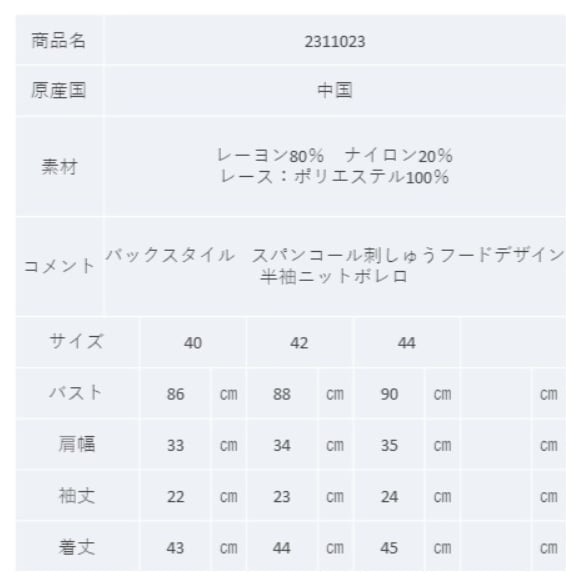 スーパービューティー カーディガン 2023年春夏入荷 フード付 半袖ニットボレロ 背中パンコール刺しゅう 2311023 ホワイト M L LL 30代 40代 50代 60代 大人かわいい服