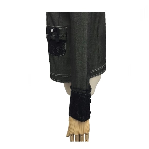 スーパービューティー ストレッチデニム 2023年春夏 レース使いノンカラージャケット ブラック 2317003 オーラボー M L LL 30代 40代 50代 60代 大人かわいい服