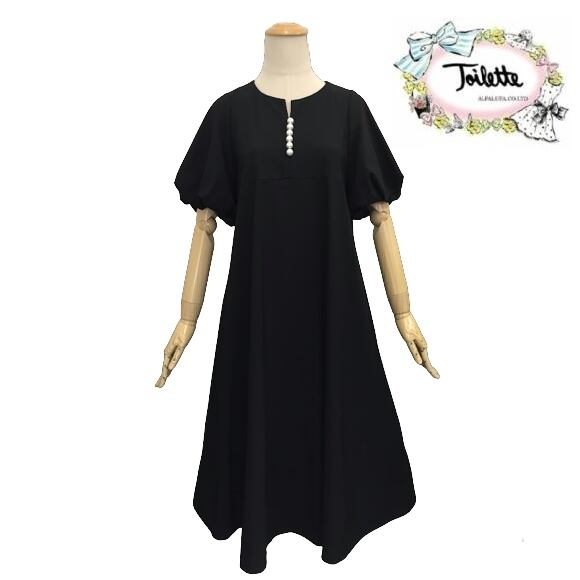 【トワレ toilette 新品】ワンピース パフ パールワンピ フリーサイズ F ブラック 大人かわいい服 30代 40代 50代 60代 ディリーウェアー 433-013