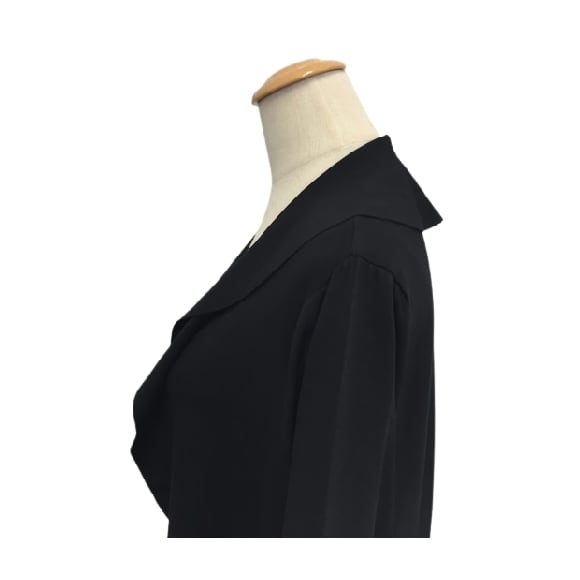 スーパービューティー カーディガン ラッフル衿 ロング ニットカーデ 2321008 ブラック 定番 オーラボー 大人可愛い キレイメ 普段着 おしゃれ着 婦人服 大人スタイル ミセス レディース アパレル 女性 M L LL 30代 40代 50代 60代