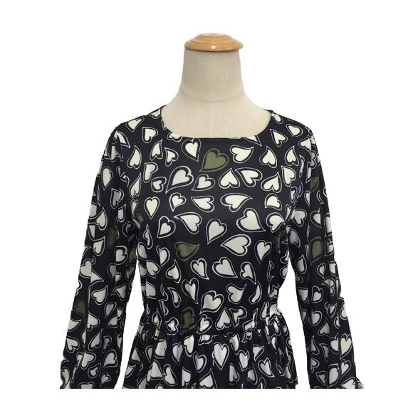 エクラタン ワンピース ストレッチ ハートプリント ブラック M L 30代 40代 50代 EC223086 大人可愛いコーディネート