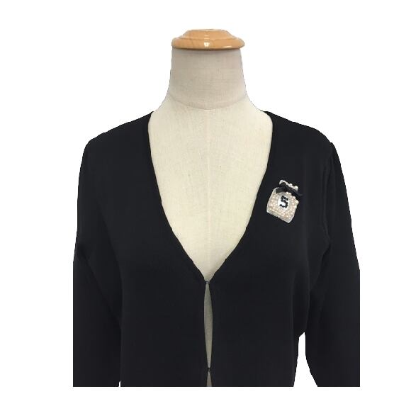 スーパービューティー カーディガン 2023年春夏 襟元ビジューモチーフ使いVネックニットボレロ ブラック 2311013 サイズ44 M L LL 大人かわいい服