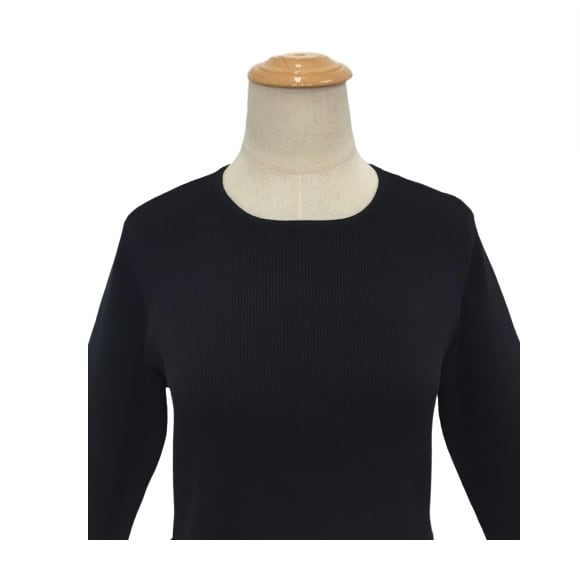 スーパービューティー チュニック 2023年秋冬 バックスタイル パールビーズ使い タフタ素材 切替ニットチュニック ブラック 2321016 M L LL 大人かわいい服