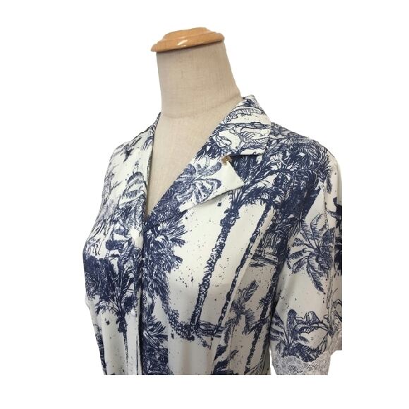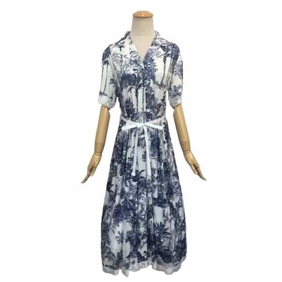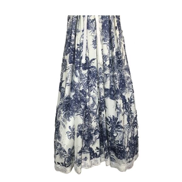 スーパービューティー ロングワンピース サファリ柄 マキシ レース使い ネイビー 2316030 オーラボー M L LL2023年春夏 30代 40代 50代 60代 大人かわいい服