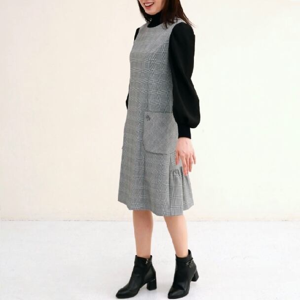 【Pont Neuf ポンヌフ 新品】ノースリーブ ワンピース ジャンパースカート M L グレンチェックサイズ2 BC3005 2023年秋冬 働く女子 通勤コーデ 大人可愛いコーディネート