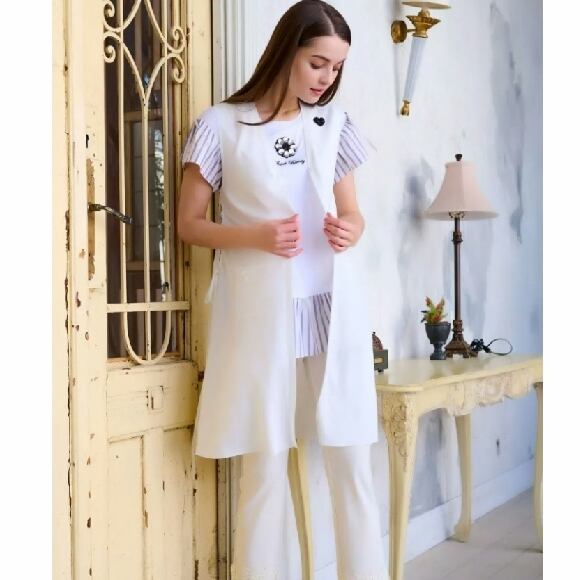 スーパービューティー 42 カットソー 2023年春夏 フラワービジュー ストライプ切替 Tシャツ2312014 L 大人かわいい服