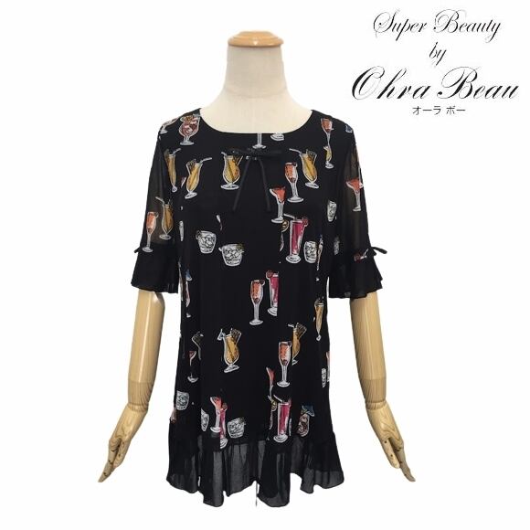 スーパービューティー チュニック パワーネット カクテル柄 ブラック 2023年春夏 オーラボー M 2312024 大人かわいい服