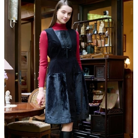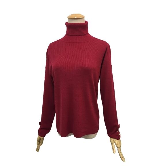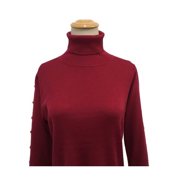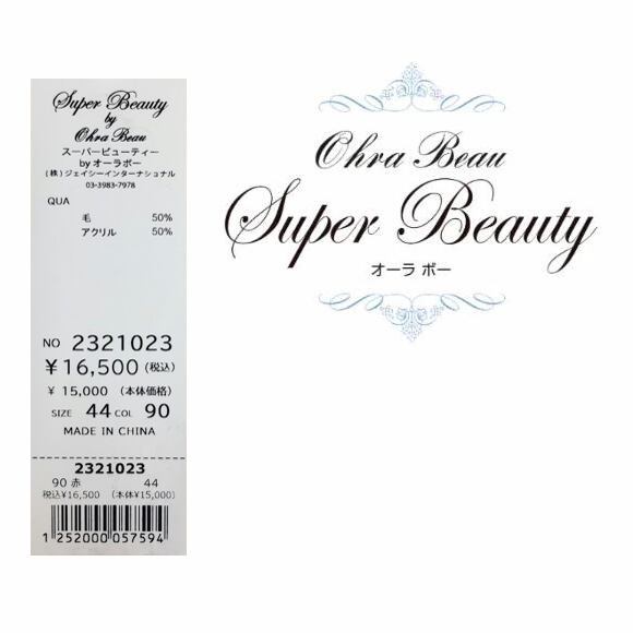スーパービューティー ニット 袖リボン 金ボタンデザイン ハイネックセーター 2321023 レッド 2023年秋冬 大人かわいい服 大人スタイル レディース キレイメ アパレル 女性 M L LL Super Beauty 30代 40代 50代 60代