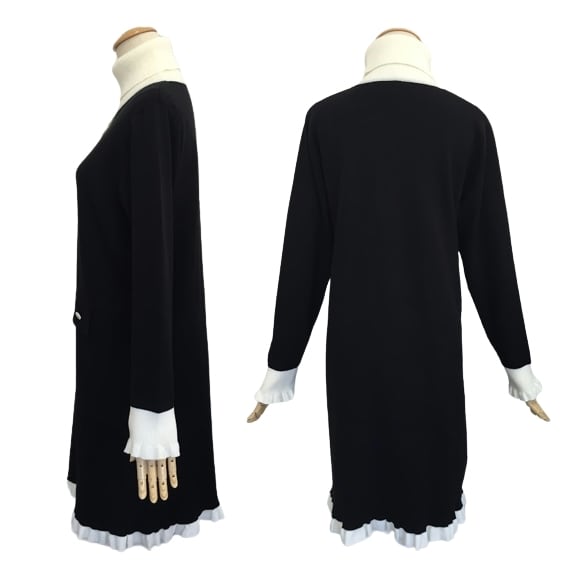 スーパービューティー ワンピース フリル ボタンデザイン タートルネック 配色ニット 2321035 ブラック 2023年秋冬 M L LL 大人可愛い