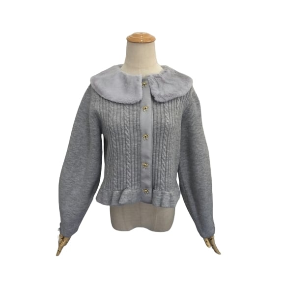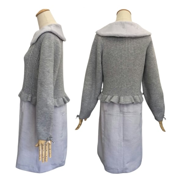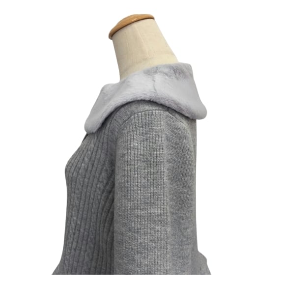 スーパービューティー ジャケット 襟&ウェストエコファー取り外し可 ニットジャケット グレー 2321041 2023年秋冬 大人かわいい服 大人スタイル レディース キレイメ アパレル 女性 M L LL Super Beauty 30代 40代 50代 60代