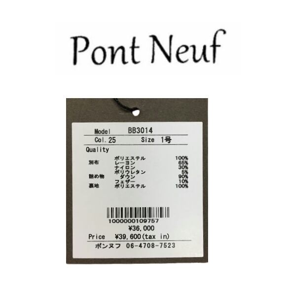 【Pont Neuf ポンヌフ 新品】ショートダウンコート ペプラムデザイン M L ベージュ BB3014 ボヌール 働く女子 通勤コーデ 大人可愛いコーディネート