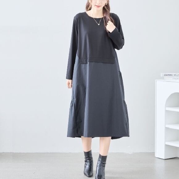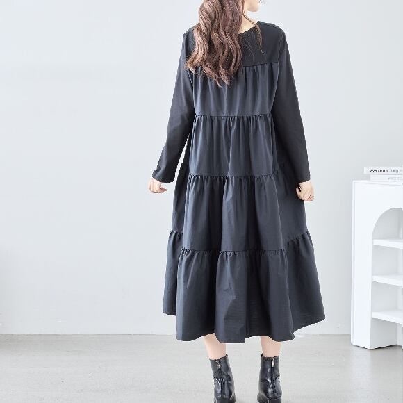 ワンピース 背面ティアード長袖ワンピ ブラック フリー M L C38-873 デイリーファッション 普段着 おしゃれ着 大人かわいい服