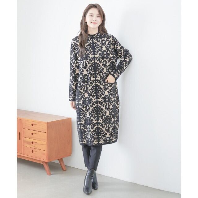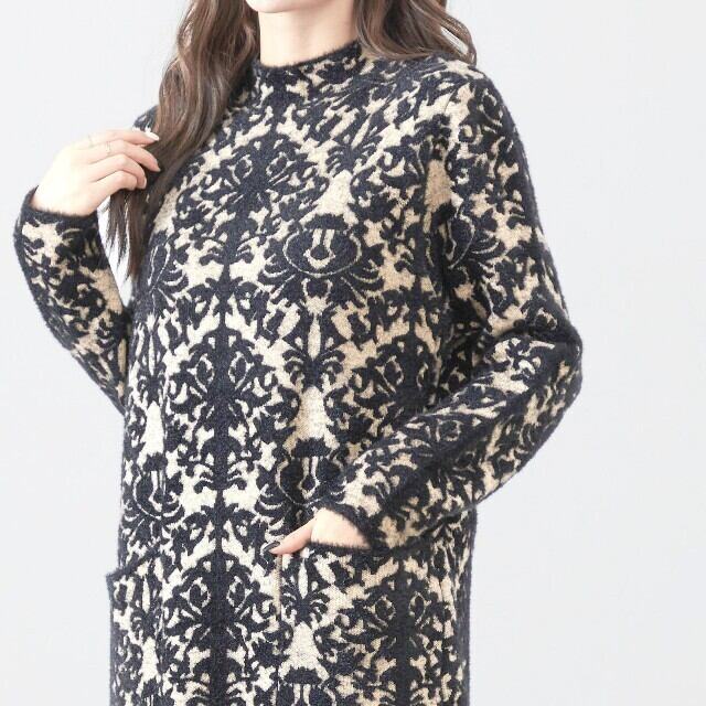 ワンピース 総柄 ジャガードニットワンピ ベージュ フリー M L R38-212 デイリーファッション 普段着 おしゃれ着 大人かわいい服