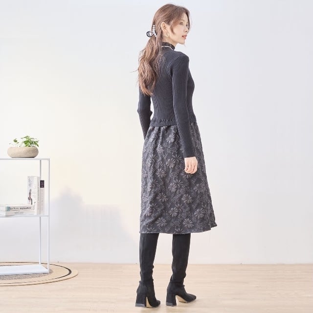 ワンピース フクレドッキングニットワンピ R38-245 ブラック フリー M L amie studio デイリーファッション 普段着 おしゃれ着