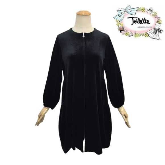 【トワレ toilette 新品】ベロア ティアードチュニックコート toilette ブラック M L 大人かわいい服 ディリーウェアー 427-017