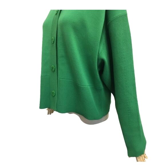 スーパービューティー カーディガン 前立てビジュー ドロップショルダーニットカーデ グリーン 2321010 LL 大人かわいい服