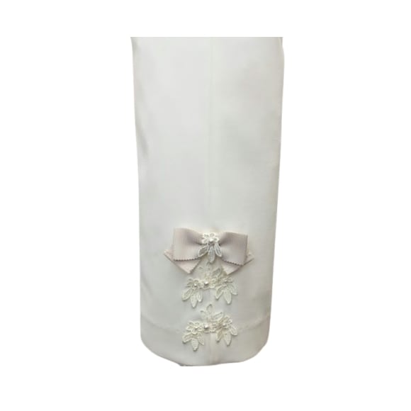 エレガントな同色レースモチーフ、リボンを添えています。