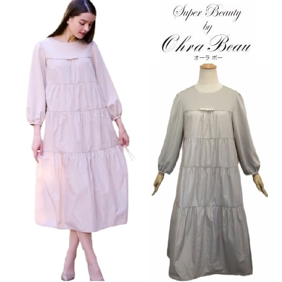 スーパービューティー ワンピース タフタ ティヤード 2024年春夏 ベージュ M L LL 30代 40代 50代 60代 大人かわいい服 2416005