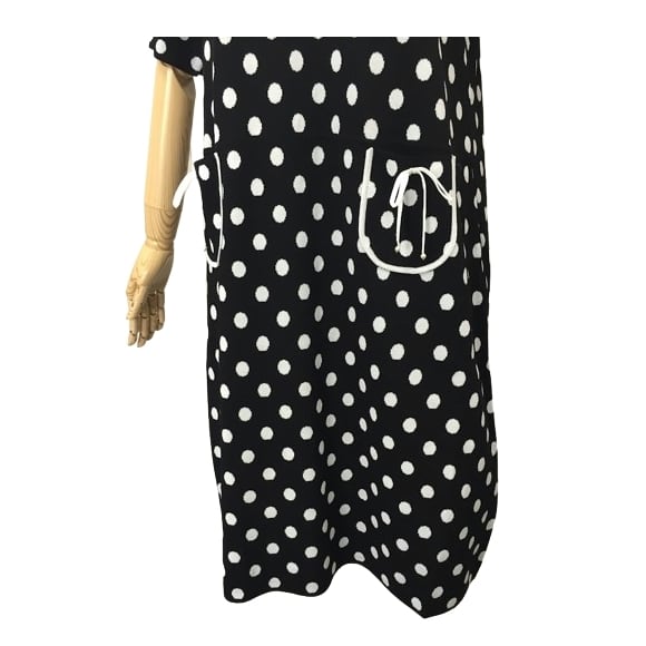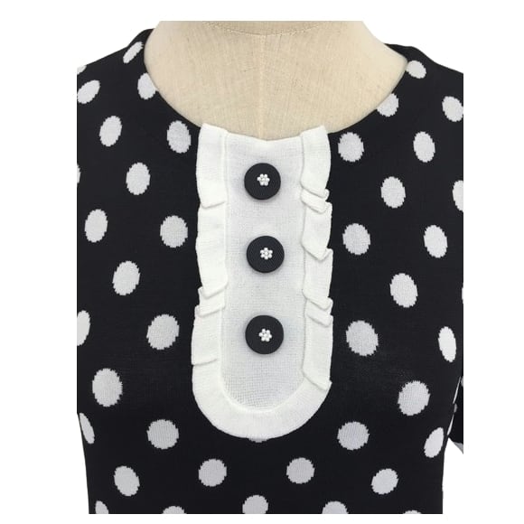 胸元フリルと水玉模様の大人可愛いニットワンピースです。