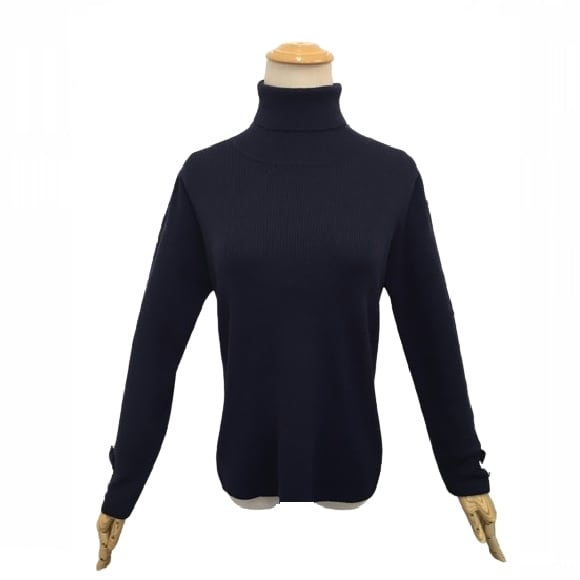 スーパービューティー ニット 袖リボン 金ボタンデザイン ハイネックセーター 2321023 ネイビー 2023年秋冬 大人かわいい服 大人スタイル レディース キレイメ アパレル 女性 M L LL Super Beauty 30代 40代 50代 60代