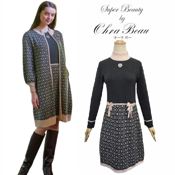 【50%OFF!】スーパービューティー ワンピース ジャカード編み ニットワンピ 2321032 グレー 2023年秋冬 大人かわいい服 ミセス ミセス キレイメ