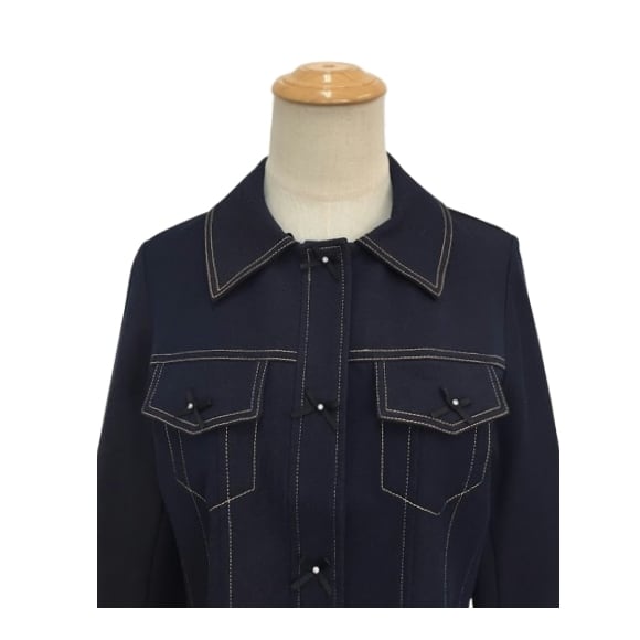 スーパービューティー デニムジャケット 裏起毛 エコファー 2023年秋冬 ネイビー 2327006 M L LL 大人かわいい服 ミセス