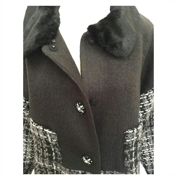 多色ツイード素材を切り替えたコートです。