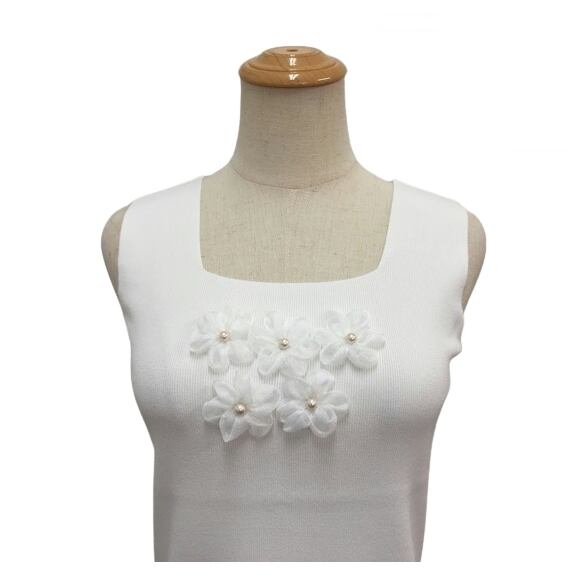 【10%OFFクーポン発行中!】スーパービューティー ノースリーブニット 胸元花モチーフ インナーニット 2411018 ホワイト 2024年春夏 M L LL 大人可愛い