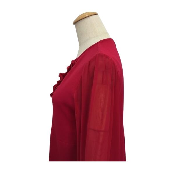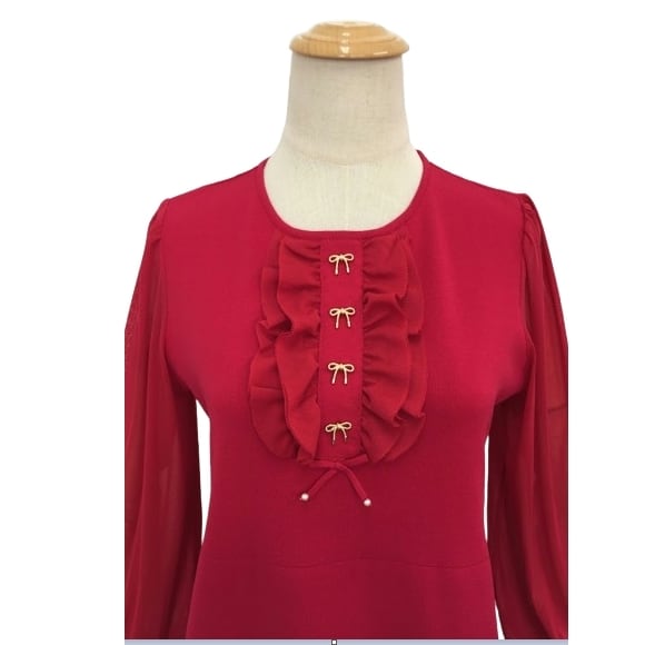 スーパービューティー ワンピース ニット フリル 袖レース レッド 2321012 2023年秋冬 大人可愛い ミセス キレイメ