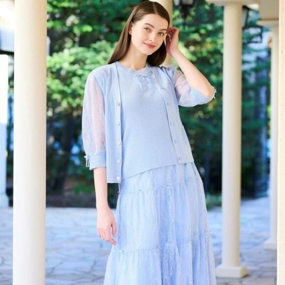 スーパービューティー カーディガン ラメ ニット袖レース 2411020 ブラック 2024年春夏 M L LL 大人可愛い オーラボー レディース キレイメ アパレル 女性 ミセス
