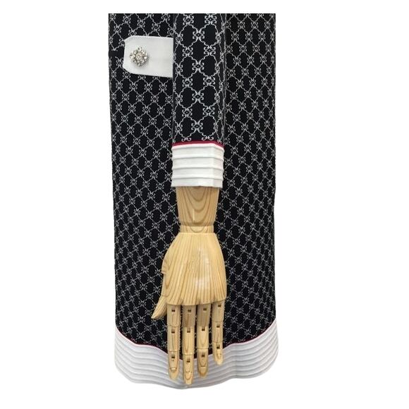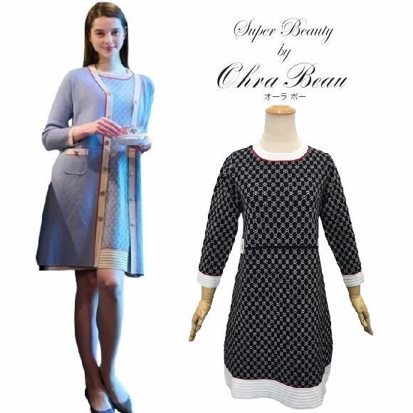 スーパービューティー ワンピース 2023年秋冬入荷 配色使い ジャガード編み ニットワンピ ブラック 2321013 M L LL 大人可愛い ミセス レディース キレイメ アパレル