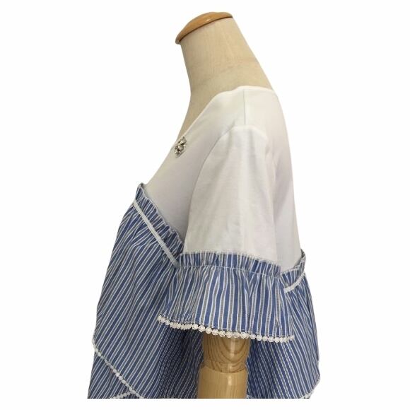スーパービューティー チュニック ストライプ 切替 チュニックTシャツ 2412015 ホワイト 2024年春夏 M L LL レディース 大人可愛い オーラボー ミセス キレイメ アパレル 女性