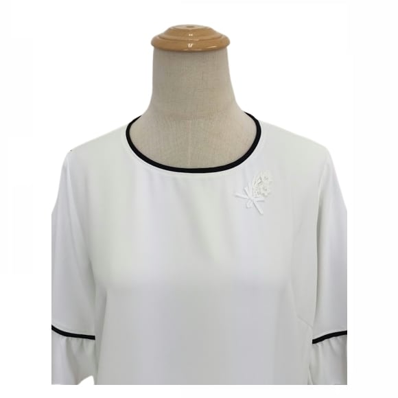 スーパービューティー カットソー パイピング フリル アシンメトリーTシャツ 2412010 ホワイト 2024年春夏 M L LL レディース 大人可愛い オーラボー ミセス キレイメ アパレル 女性