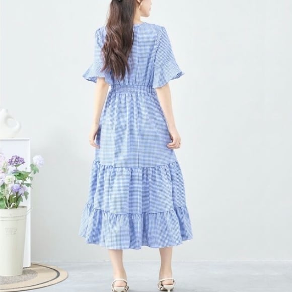 ワンピース 袖フリル ティアード Vネックワンピ C38-1134 フリー M L 大人可愛い ミセス fmsd キレイメ アパレル 女性 デイリーファッション 普段着 おしゃれ着 レディース 30代 40代 50代 60代 洋服 婦人服 可愛い服