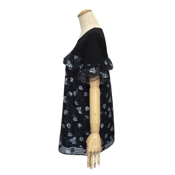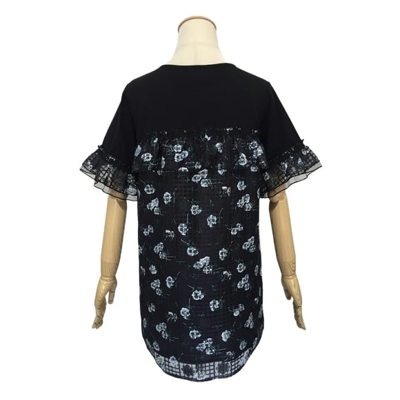 スーパービューティー チュニックTシャツ 花 格子レース素材 胸元切替 2412022 ブラック 2024年春夏 M L LL レディース 大人可愛い オーラボー ミセス キレイメ アパレル 女性