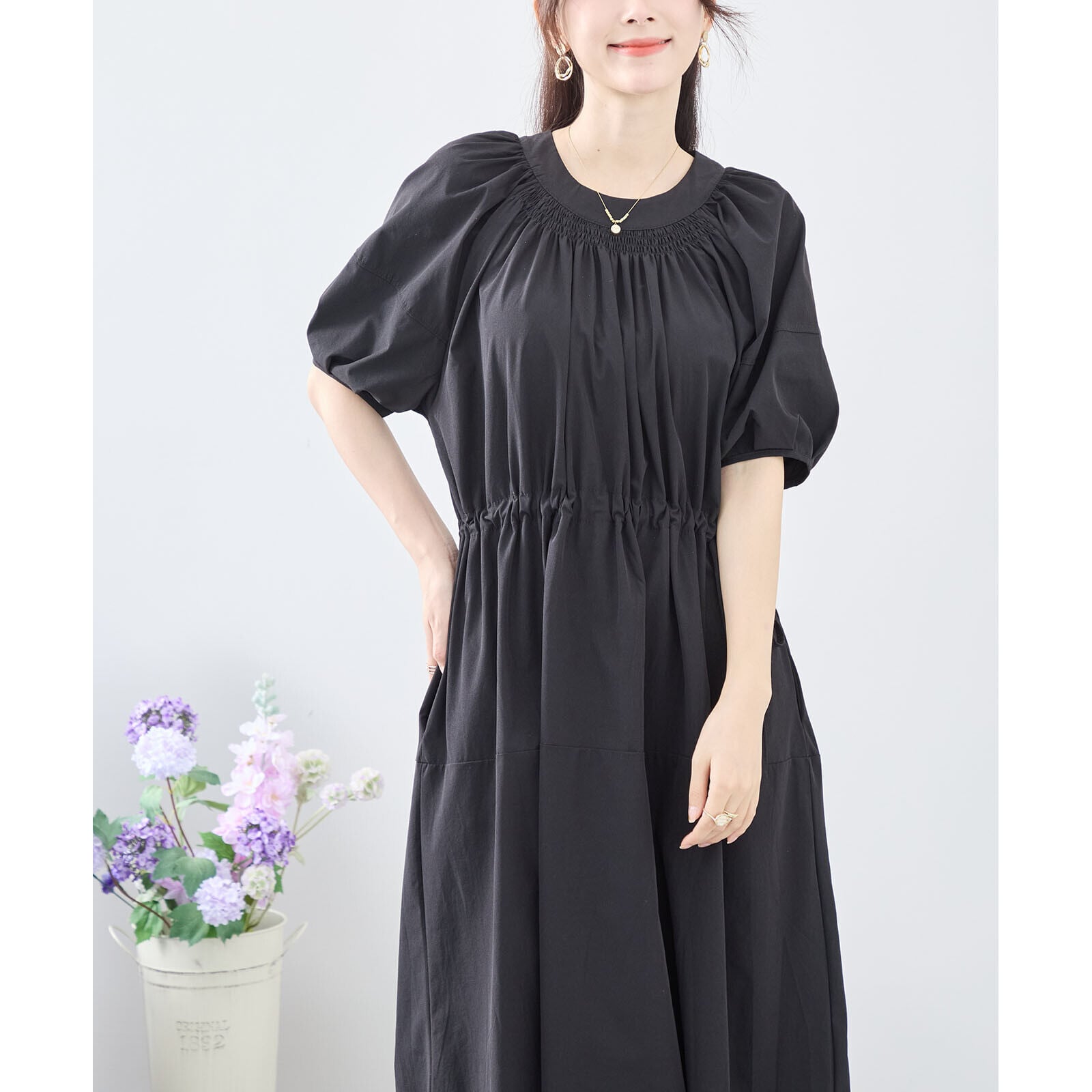ワンピース ギャザーデザイン パワーショルダーワンピ C38-1209 フリー M L 大人可愛い ミセス fmsd キレイメ アパレル 女性 デイリーファッション 普段着 おしゃれ着 レディース 30代 40代 50代 60代 洋服 婦人服 可愛い服