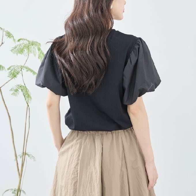 カットソー ネックパール使い パフスリーブトップス C31-1975 フリー M~L amie studio 大人可愛い ミセス fmsd キレイメ アパレル 女性 デイリーファッション 普段着 おしゃれ着 レディース 30代 40代 50代 60代 洋服 婦人服 可愛い服