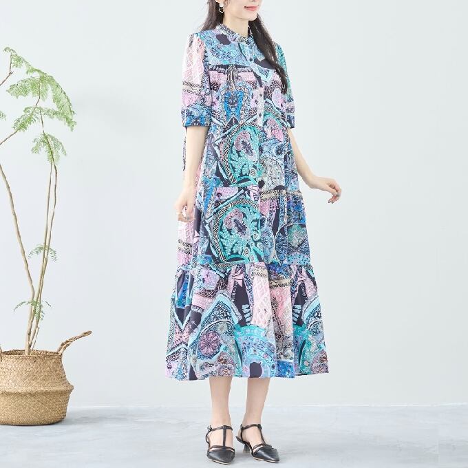 ワンピース総柄 ロングワンピ C38-1181 フリー M~L TRUBE 大人可愛い ミセス fmsd キレイメ アパレル 女性 デイリーファッション 普段着 おしゃれ着 レディース 30代 40代 50代 60代 洋服 婦人服 可愛い服