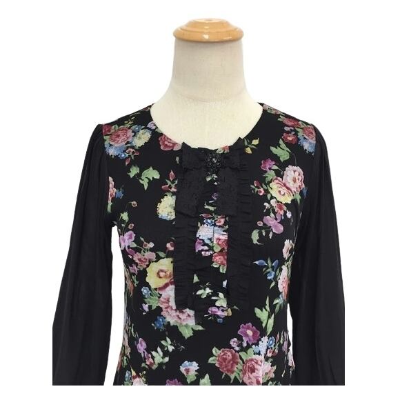 スーパービューティー チュニックカットソー パワーネット 胸元リボンデザイン Sサイズあり 2422003 ブラック 2024年秋冬 大人かわいい服 ミセス レディース キレイメ アパレル 女性 30代 40代 50代 60代