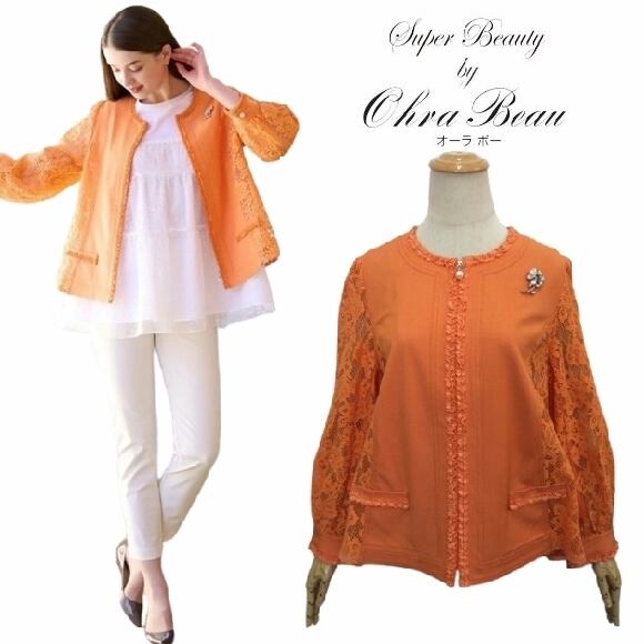 スーパービューティー デニム ジャケット レース使い 2417001 オレンジ 2024年春夏 オーラボー 大人かわいい服 ミセス キレイメ レディース アパレル 女性 M L LL 30代 40代 50代 60代