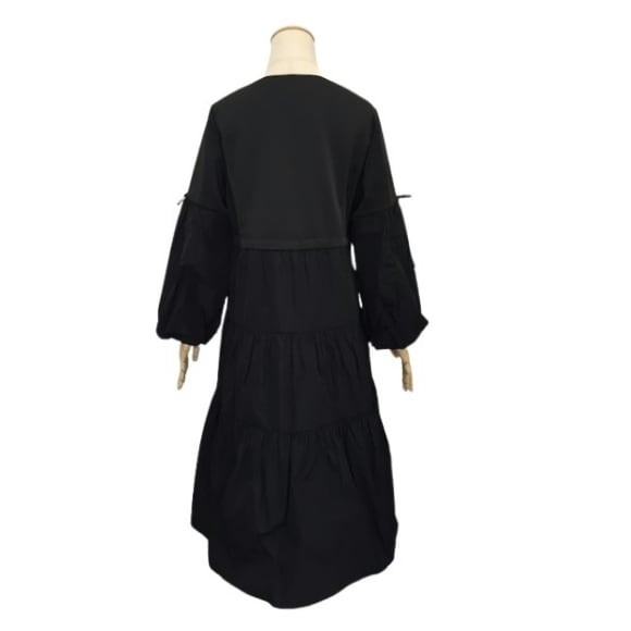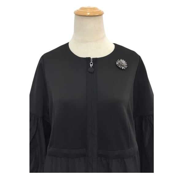 スーパービューティー ロングジャケット バルーン袖 ティアードデザイン タフタ ノーカラー ワンピース 2427002 ブラック 2024年秋冬 大人かわいい服 ミセス レディース キレイメ アパレル 女性 30代 40代 50代 60代