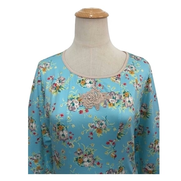 スーパービューティー チュニック カットソー 裾フレア 花柄 2422002 ブルー 2024年秋冬 大人かわいい服 ミセス レディース キレイメ アパレル 女性 30代 40代 50代 60代
