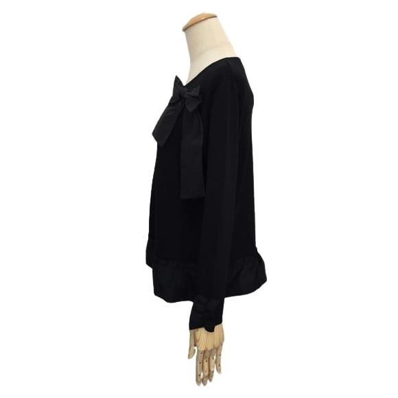 スーパービューティー ニット リボンモチーフ付き 裾フリル 切替セーター 2421003 ブラック 2024年秋冬 オーラボー 大人かわいい服 ミセス キレイメ レディース アパレル 女性 M L LL 30代 40代 50代 60代