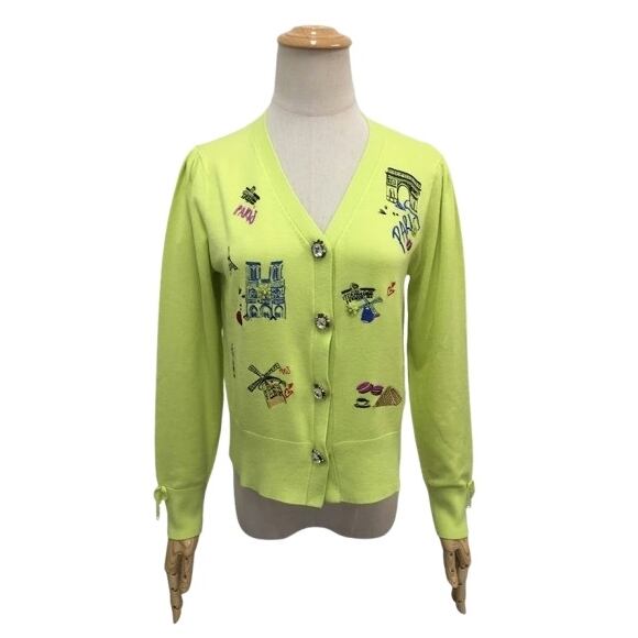 スーパービューティー カーディガン パリ エッフェル塔 2411015 グリーン 2024年春夏 オーラボー M L LL大人かわいい服 ミセス キレイメ レディース アパレル 女性 M L LL 30代 40代 50代 60代